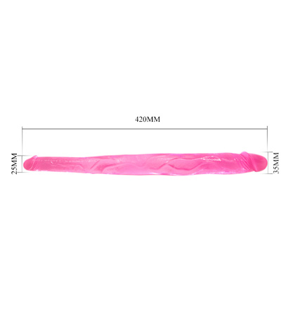 Dildo Doble Evangeline para una versatilidad total en tu vida sexual; este hermoso dildo doble no solo es impresionante, sino que también es el dildo de doble extremo más compacto. Con sus generosos 42 cm de largo, este dildo de doble extremo te satisfará en cualquier ocasión. Puede ser usado por una persona o por dos personas a la vez. Su cuerpo veteado proporciona un placer interno adicional, con extremos realistas tipo pene para una experiencia totalmente real. Hecho de un material altamente flexible, suave y seguro para el cuerpo, este dildo doble se dobla para adaptarse a tus necesidades. Úsalo vaginal o analmente a tu gusto. Además, es resistente al agua, así que puedes disfrutarlo en la bañera, la ducha o en la cama.