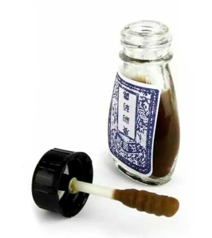 - Notará que la tapa trae en su interior un pequeño pincel de algodón, el cual sale impregnado con la solución liquida.