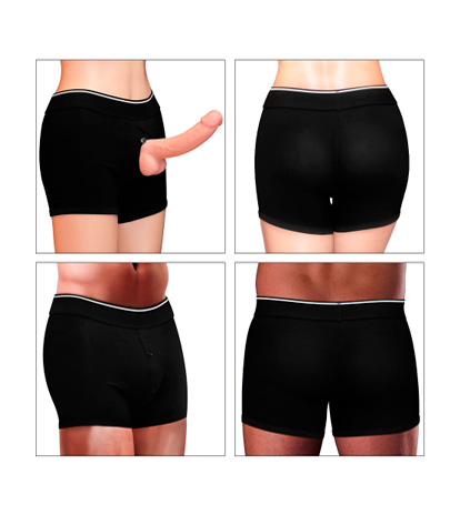 Estos bóxers sin hebillas y sin complicaciones aumentan tu placer al instante. Para usar en la cama, simplemente retira el suave empaque y reemplázalo con cualquier dildo compatible para una experiencia de penetración.