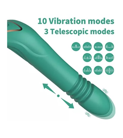 Vibrador Bertha Telescopic estimula el punto «G», cuenta con 10 modos de vibración y 3 modos de movimiento telescópico que te llenarán de placer. Este juguete sexual manos libres puede darte una estimulación placentera donde quiera que vayas.